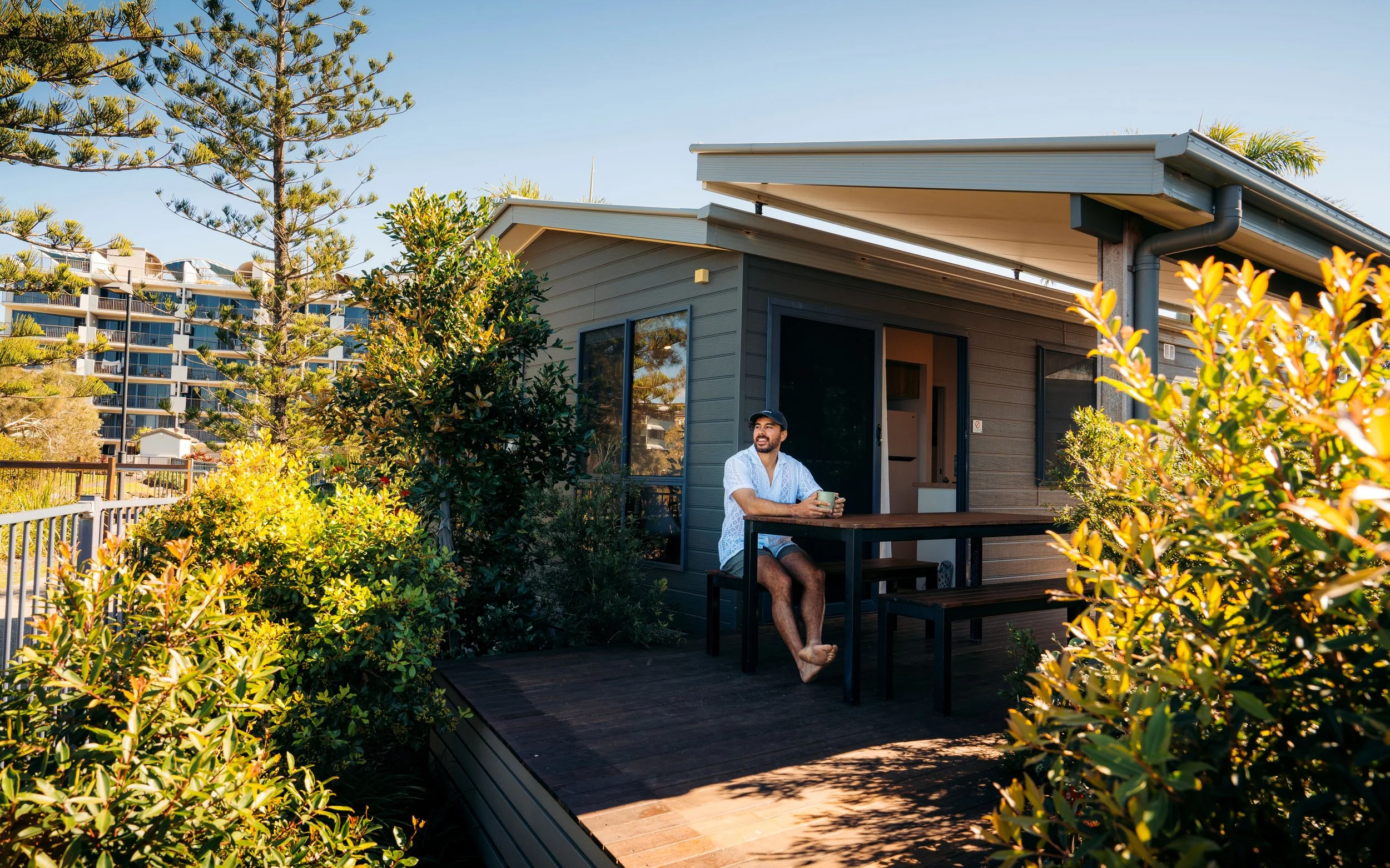 These are our absolute Rock Star cabins with a central park location, amazing facilities and sweeping views of the Pumicestone Passage and out to sea.